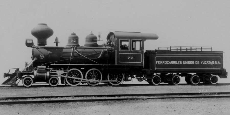 Ferrocarril Unidos de Yucatan (UdeY) 10-Wheeler No. 72, brand new in 1925. It's now at Walt Disney World - see photo on the right. Click to enlarge. (SMU Central University Libraries, No restrictions, via Wikimedia Commons)