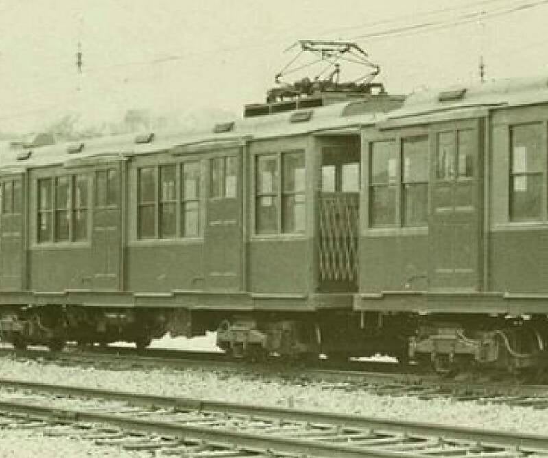 New Haven RP-210 with first 3rd-rail shoe revision on front truck, and roof DC pantograph not yet fitted, January 1957. (Baldwin-Lima-Hamilton Corporation (defunct, 1972), Philadelphia, Pennsylvania - Copyright - March, 1957, Public domain, via Wikimedia Commons)