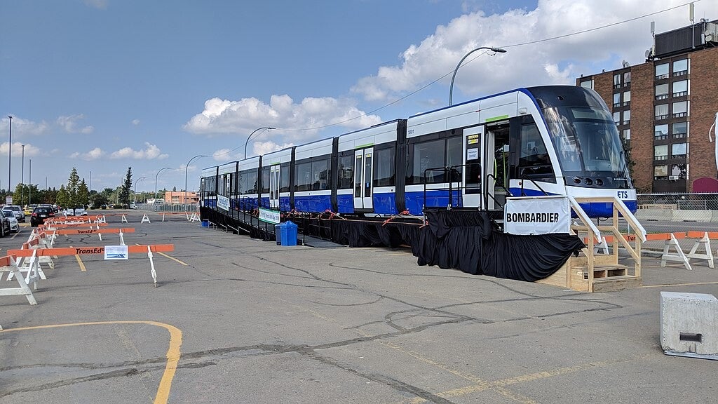 As part of the consortium that won the contract to build and operate the Edmonton LRT Valley Line Southeast in February 2016, Bombardier provided Flexity Freedom vehicles for use on the new line, as opposed to Siemens LRVs (Siemens SD-160 and Siemens–Duewag U2) on the existing Capital and Metro Lines. Where the vehicles built for Ontario have five segments, the vehicles built for Edmonton are longer, built of seven segments. The first car was shipped on June 27, 2018 (from Kingston, Ontario, on CN Rail) and went up for display at Bonnie Doon Shopping Center (next to the location of the what is now the Valley Line Bonnie Doon stop) on July 27, 2018. The Edmonton LRVs have 82 seats each, 8 doors on each side, and each have a capacity of 275 people. A total of 26 trains were produced for the line, with 10 delivered in late 2018, 13 in 2019, and 3 in 2020. On November 4, 2023, regular service on the Valley Line began.