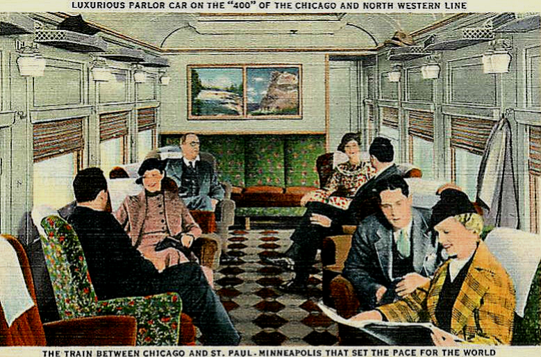 Chicago and North Western Railway "400" parlor car. (Chicago and North Western, Public domain, via Wikimedia Commons)