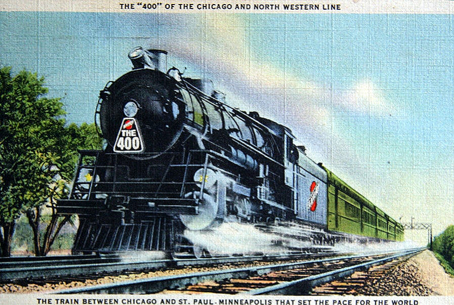 The Famous 400 in 1936. (Curt Teich, Chicago and North Western, Public domain, via Wikimedia Commons)