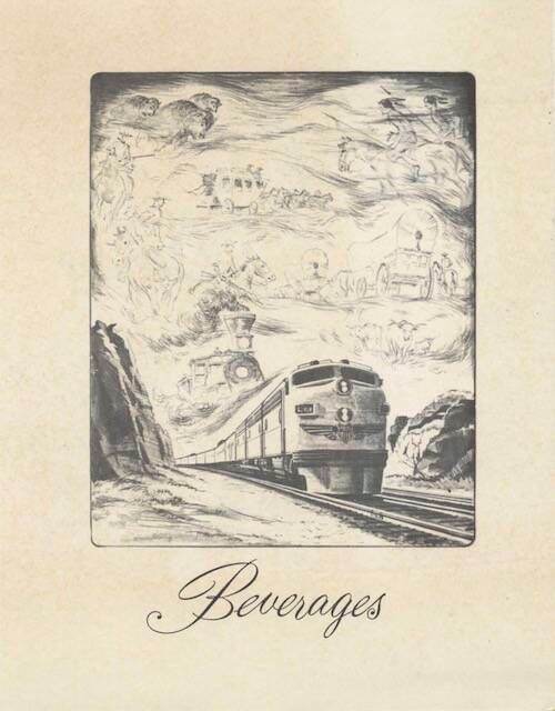 A UP City of Denver beverage menu. Click image to download a 493 kb PDF. (Union Pacific courtesy/via StreamlinedMemories.info.)