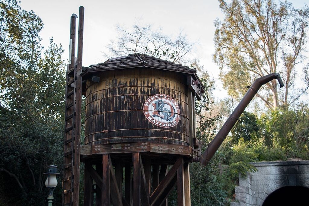 Before the opening of Disneyland, a station in the Main Street, U.S.A. section and a station in the Frontierland section were built for the DRR. Main Street, U.S.A. Station, an example of Second Empire-style architecture, was built at the entrance to Disneyland using an original design that incorporated forced perspective elements on its upper levels to make it appear taller. Frontierland Station was built based on the design of the depot building located on the Grizzly Flats Railroad, a full-size 3 ft (914 mm) narrow-gauge railroad owned by Disney animator Ward Kimball in his backyard. Besides the depot building, the DRR's functioning water tower was also built at Frontierland Station.