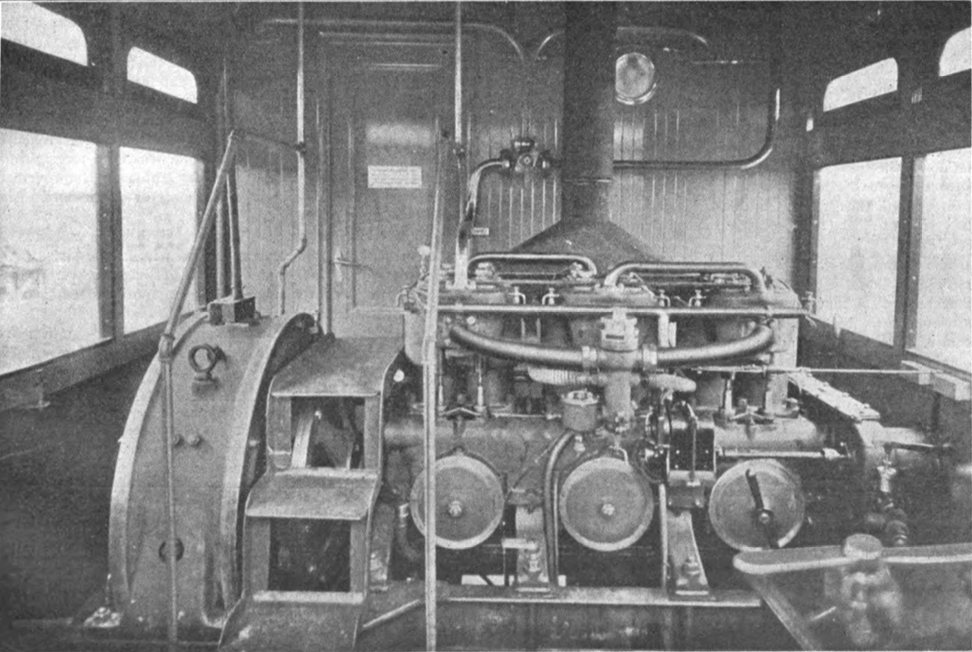 Engine compartment in a Drake Railway Automotrice. November 1912. (Railway Age Gazette, Public domain, via Wikimedia Commons)