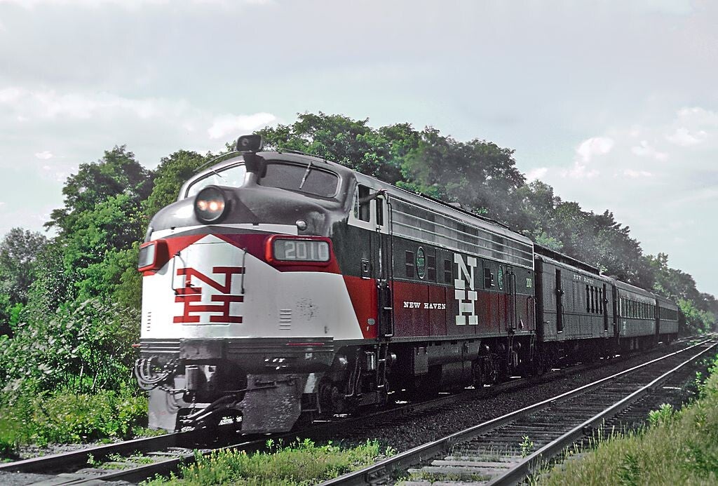 New Haven FL9 No. 2010 with Train No. 83, a Springfield, Massachusetts to New York City train, near Enfield, CT on July 20, 1968. (Roger Puta, courtesy Marty Bernard, Public domain, via Wikimedia Commons)