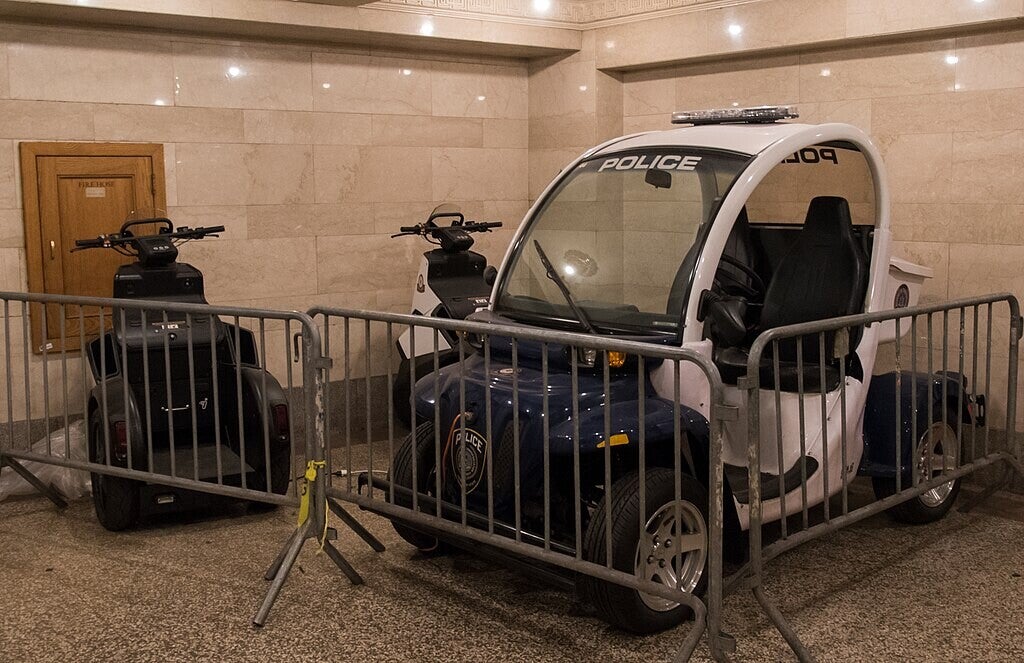 MTA Police T3 scooters and GEM electric vehicles for patrol.