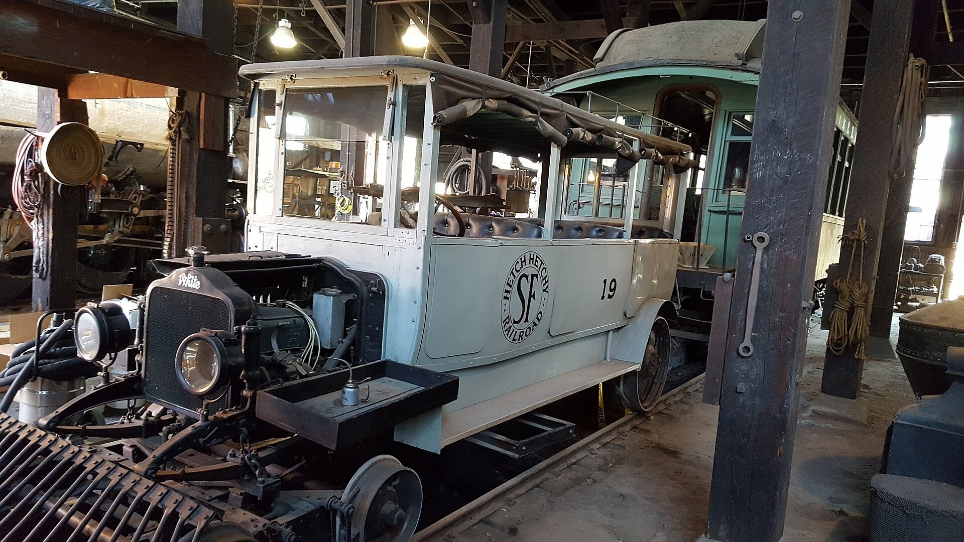 Hetch Hetchy Railroad Motorcar No. 19 appears in a list of equipment invited to Railfair '99. This motorcar is in the collection of Railtown 1897.