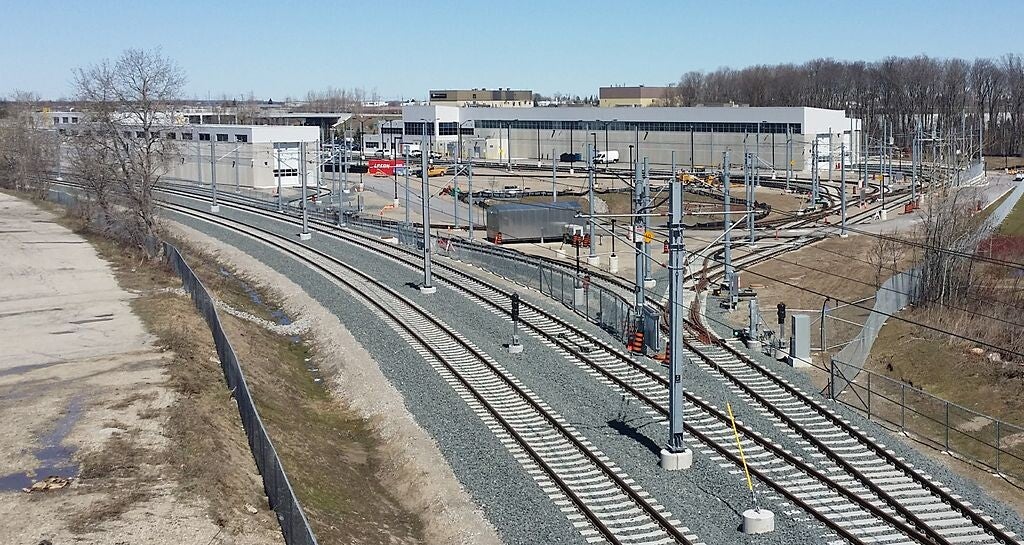 Electrification work near University of Waterloo campus in April 2016. (JustSomePics, CC BY-SA 4.0 <https://creativecommons.org/licenses/by-sa/4.0>, via Wikimedia Commons)