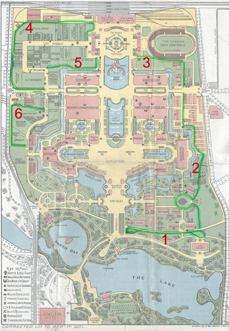 The Cagney brothers built and operated a 15 in (381 mm) gauge miniature railway at the Pan-American Exposition held in Buffalo, New York, United States, from May 1 until November 2, 1901. With a ticket that cost 10 cents, passengers could board small, open cars and ride on six sections to the end of the line.