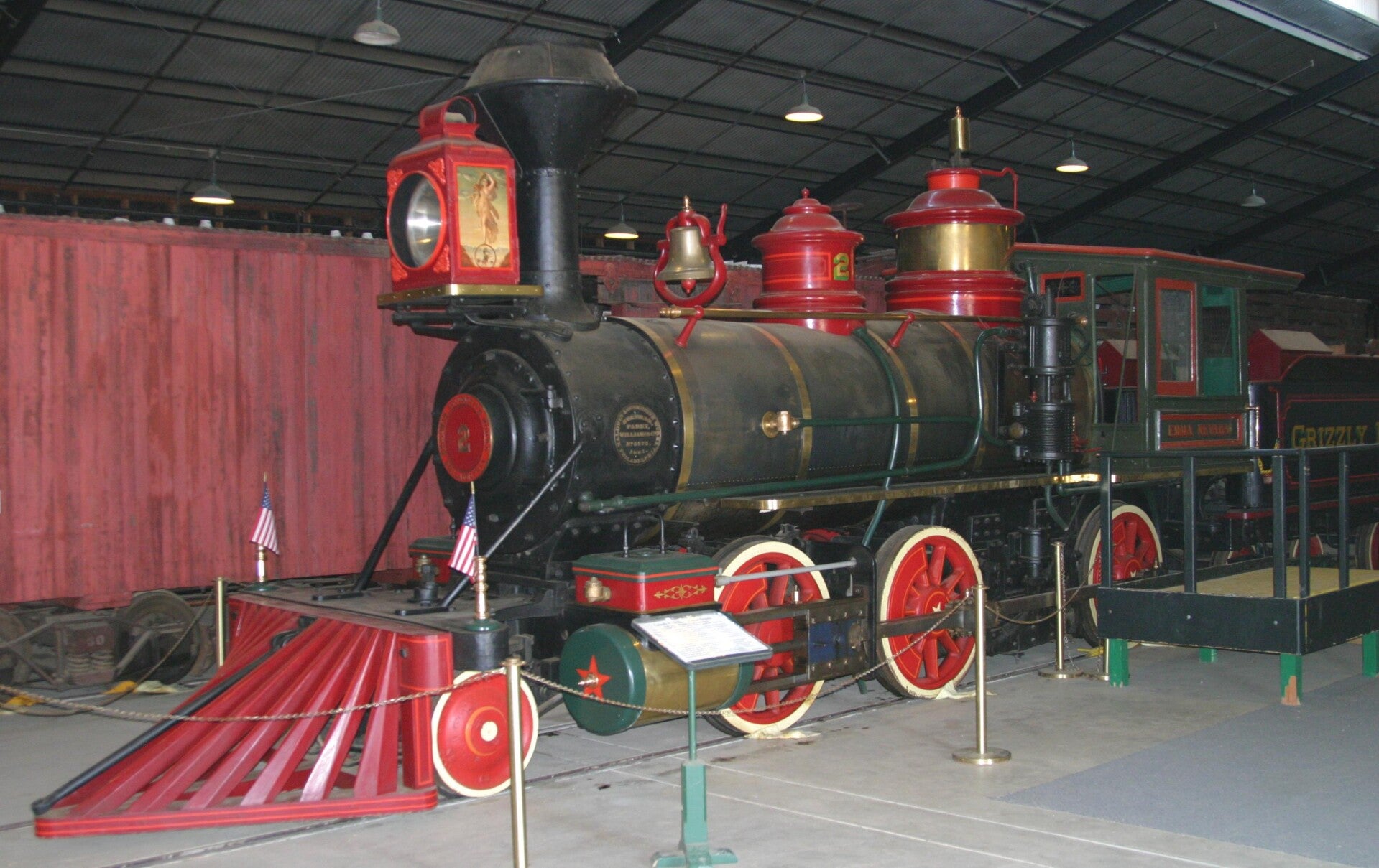 The Emma Nevada once named "Sidney Dillon" (Nevada Central No. 2) is an 1881 Baldwin Locomotive Works 2-6-0 "Mogul" 3 ft (914 mm) narrow gauge steam locomotive purchased by Disney animator Ward Kimball and his wife Betty for their backyard "Grizzly Flats Railroad" in 1938. Originally built for the short line Nevada Central Railroad connecting Battle Mountain with Austin, the beautifully restored locomotive features Kimball's own artwork on the cab and headlight and was finally fired up in 1942. Complaints of Kimball's neighbors because of the coal smoke forced Kimball to sideline the locomotive in 1951 and operated his railroad with a small 0-4-2T locomotive. Kimball, one of the Orange Empire Railway Museum's founders, donated the locomotive to the museum and it can be seen today in the museum's "Grizzly Flats" car barn. The Orange Empire Railway Museum is now known as the Southern California Railway Museum.