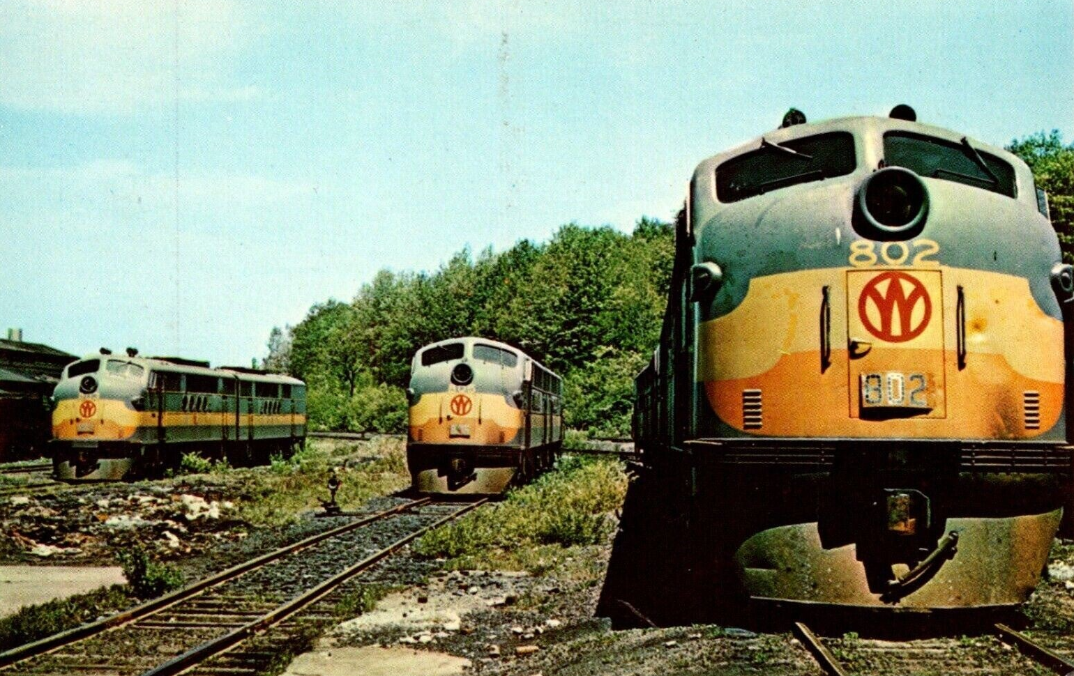 Depiction of new New York, Ontario and Western Railway EMD built diesel locomotives built for freight service in 1947 from a pocket calendar.