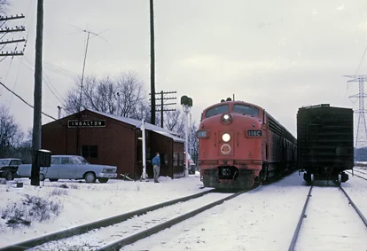 CGW 116C (FP7) leads freight No. 192 passing Ingalton, IL Station on January 5, 1968. Photo by Roger Puta.