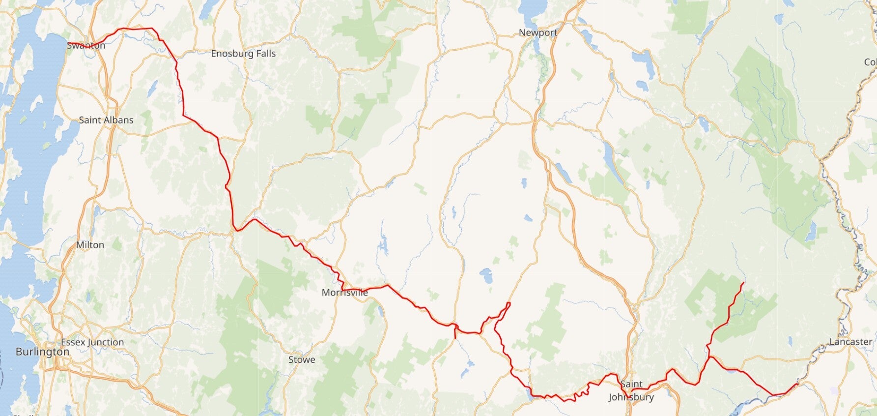 The St. Johnsbury and Lamoille County Railroad (StJ&LC) was a railroad located in northern Vermont. It provided service to rural parts of the state for over a century, until track deterioration and flood damage made the line unusable and uneconomical to repair, which forced the line to close in 1995. Vermont is in the process of converting the roughly 96-mile route from St. Johnsbury to Swanton into a rail trail, known as the Lamoille Valley Rail Trail. Once completed it will be the longest rail trail in New England.