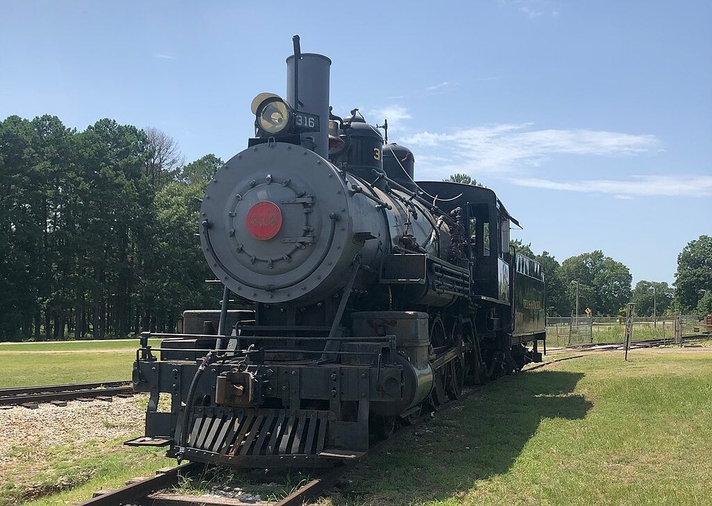No. 316 was built in 1901 by Cooke Locomotive Works and is a Class D-9 4-6-0. Sold to the Paris and Mount Pleasant Railroad in 1949. Donated to Abilene, Texas in 1951. Donated again to the Texas State Railroad in 1974 and was renumbered to 201. The locomotive was taken out of service at the end of the 2013 season. It is currently on display outside the Palestine engine house awaiting a possible restoration to service. (DRGW488, CC BY-SA 4.0 <https://creativecommons.org/licenses/by-sa/4.0>, via Wikimedia Commons)