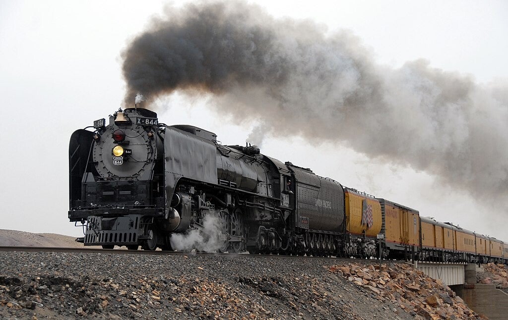 Union Pacific FEF-3 No. 844 running eastbound in California after departing Sacramento on October 4, 2012. (Drew Jacksich from San Jose, California Republic, CC BY 2.0 <https://creativecommons.org/licenses/by/2.0>, via Wikimedia Commons)