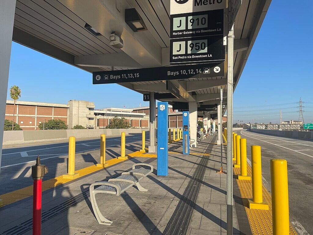 The Patsaouras Transit Plaza on the east side of Union Station hosts several connecting bus lines, including Metro Local, Metro Rapid and Metro Express lines, as well as downtown DASH shuttles, many municipal bus lines, FlyAway express bus service to Los Angeles International Airport, Greyhound buses, and University of Southern California campus shuttles. The Transit Plaza is named after Nick Patsaouras, former RTD board member and advocate for public transportation.