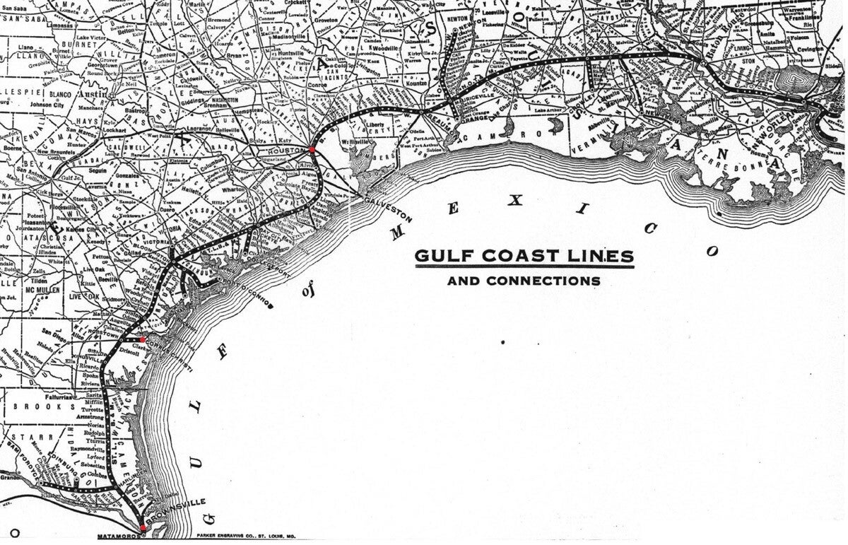 as well as the east-west branch line to Corpus Christi. Click to enlarge.