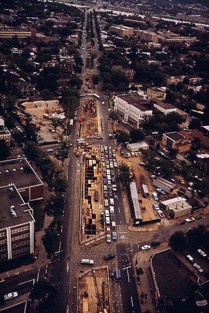 The Washington Metro being constructed on Connecticut Avenue in March 1973. (Yoichi R. (Yoichi Robert) Okamoto, 1915-1985, Photographer, Public domain, via Wikimedia Commons)